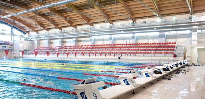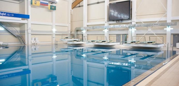 Осуществить полный цикл работ по созданию многофункционального комплекса со спортивными бассейнами для проведения соревнований и бассейном для обучения плаванию. Бассейны: плавательный 50×25 м, прыжковый 25×25 м с 10-метровой вышкой, и воздушной подушкой безопасности. Водоизмещение 5000 м3 (40 000 м2). Разработали проектно–сметную документацию, осуществили поставку оборудования и строительство. Объект введён в эксплуатацию в 2009 году.